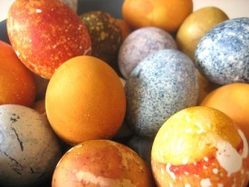 With some practice and help from your children you can perfect this so that the dyes are a very nice color and coat the egg real well. The eggs should be cool and dry before dying them with the natural dyes. When you are making the dyes, put the material you are using into a sauce pan and like you are going to make tea you make the dye. Add water as you need to but do not dilute the color or you will not be able to dye anything with it. Have a healthy Easter this year!